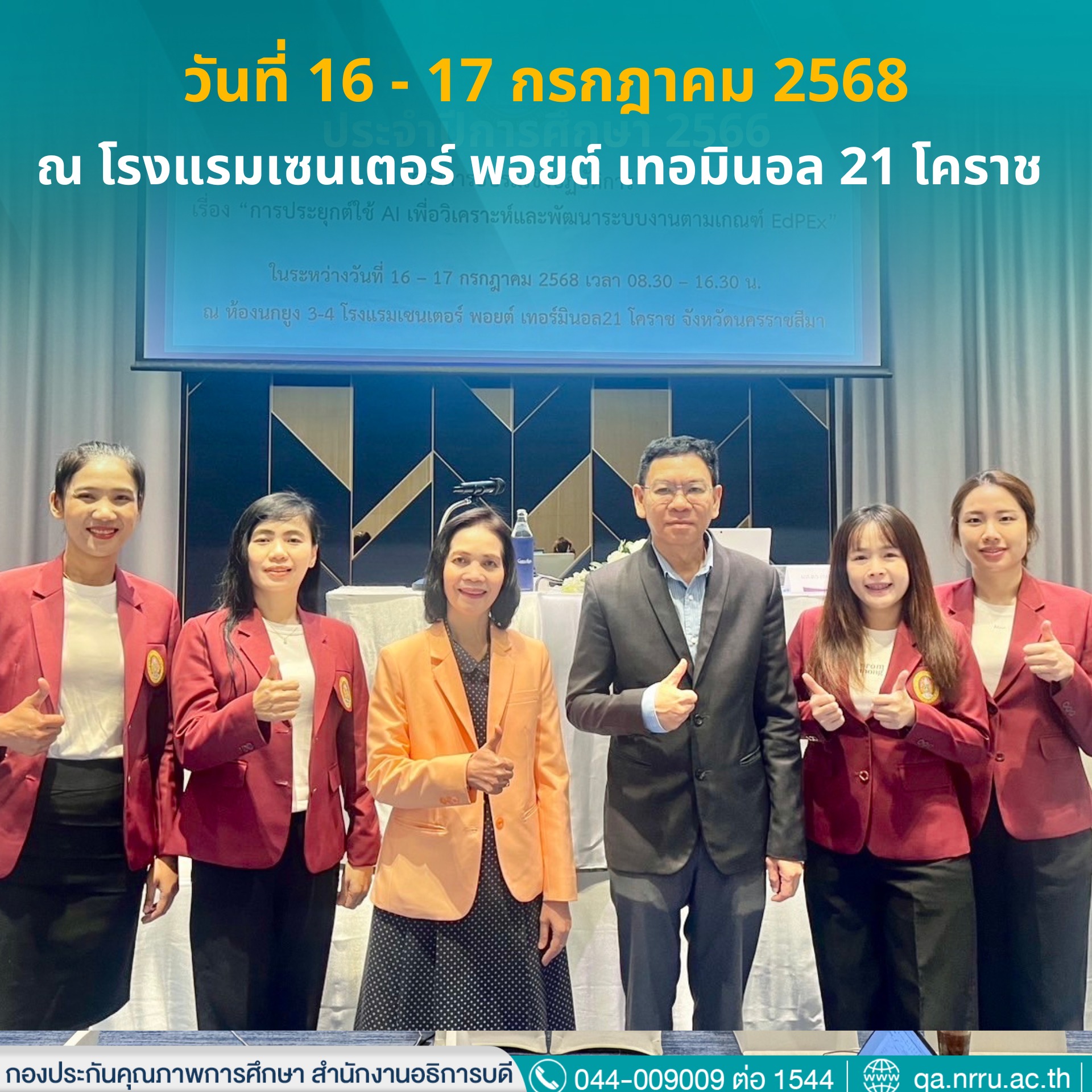 เมื่อวันที่ 16 – 17 กรกฎาคม 2568 กองประกันคุณภาพการศึกษา มหาวิทยาลัยราชภัฏนครราชสีมา ได้จัดโครงการอบรมเชิงปฏิบัติการเรื่อง “การประยุกต์ใช้ AI เพื่อวิเคราะห์และพัฒนาระบบงานตามเกณฑ์ EdPEx” ณ โรงแรมเซนเตอร์ พอยต์ เทอมินอล 21 โคราช โดยมีบุคลากรจากหน่วยงานต่าง ๆ ภายในมหาวิทยาลัยเข้าร่วม ซึ่งการอบรมในครั้งนี้มุ่งเน้นการสร้างความเข้าใจและทักษะในการนำเทคโนโลยีปัญญาประดิษฐ์ (AI) มาใช้เป็นเครื่องมือสนับสนุนการบริหารจัดการภายในองค์กร โดยเฉพาะการวิเคราะห์ระบบงานให้เชื่อมโยงกับแนวทางของ เกณฑ์ EdPEx ซึ่งเป็นกรอบคุณภาพที่ใช้ในการพัฒนาองค์กรภาครัฐและภาคการศึกษาอย่างเป็นระบบ และได้รับเกียรติจาก ผู้ช่วยศาสตราจารย์ ดร.เจษฎา ความคุ้นเคย วิทยากรผู้เชี่ยวชาญด้าน TQM และผู้ผ่านการอบรมจาก TQM NEW ASSESSOR TRAINING 2021 เป็นวิทยากรถ่ายทอดความรู้และแลกเปลี่ยนประสบการณ์ผ่านกิจกรรมที่เน้นการเรียนรู้แบบลงมือปฏิบัติจริง